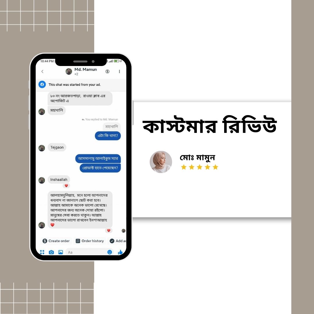 সবকিছু দেখে শুনে অর্ডার করুন। প্রোডাক্ট রিসিভ না করলে আমাদের 210 টাকা লস হবে! হেল্প করবেন আশা করি। প্রয়োজনে কল করুনঃ 01715788000