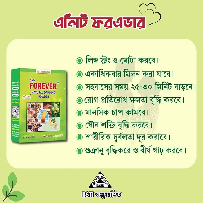 👉 দ্রুত বীর্যপাত বন্ধ করবে এলিট ফরএভার সফট ড্রিংকস নিয়মিত সেবনে দ্রুত বীর্যপাত বন্ধ হয় এবং মিলনে সময় বাড়ে ২৫-৩৫ মিনিট